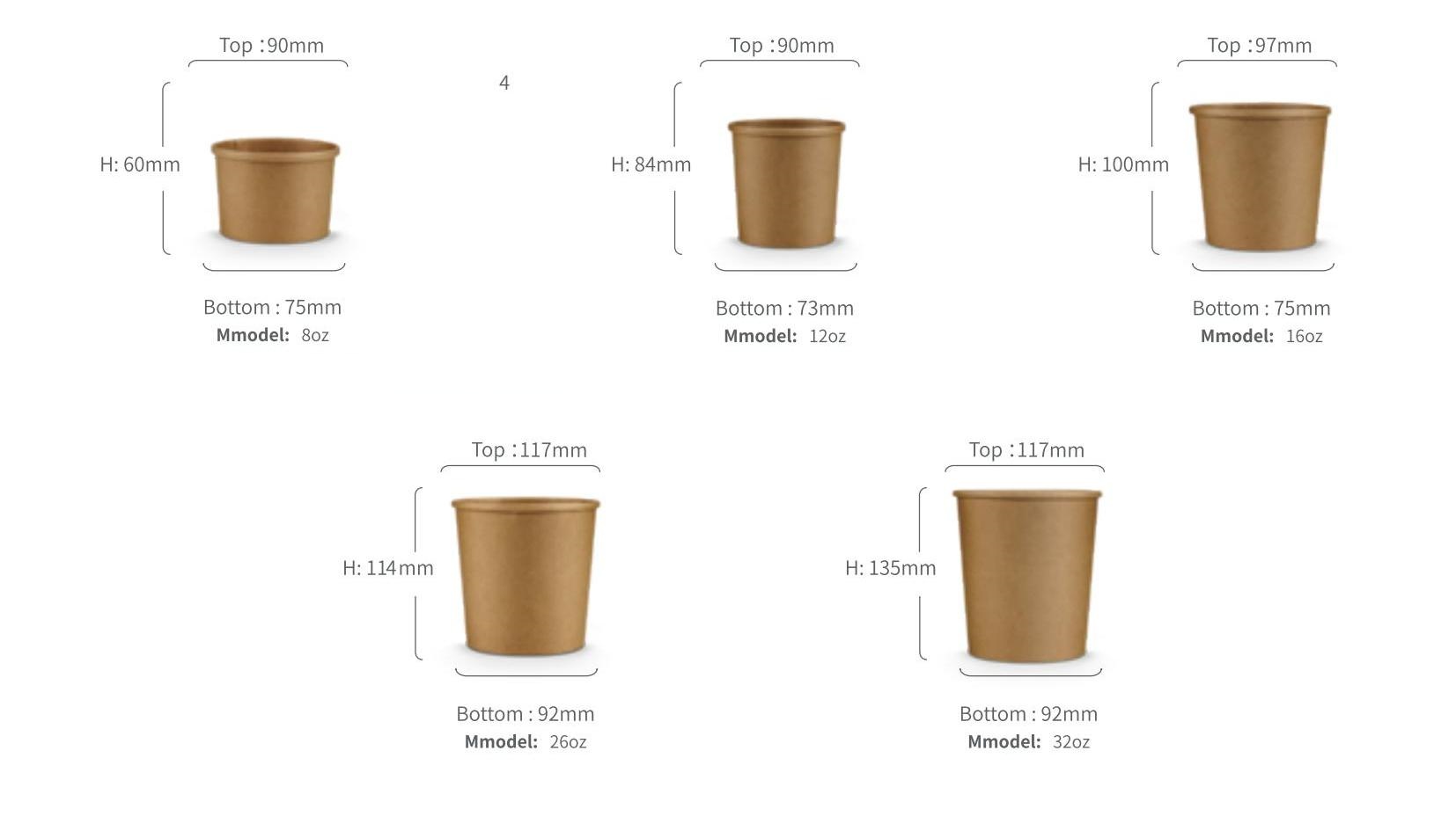 Diameter:114mm 353ml/440ml/492ml/528ml With PP Lid